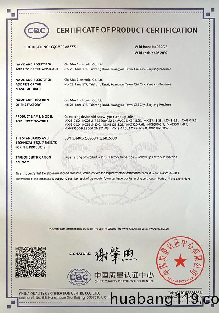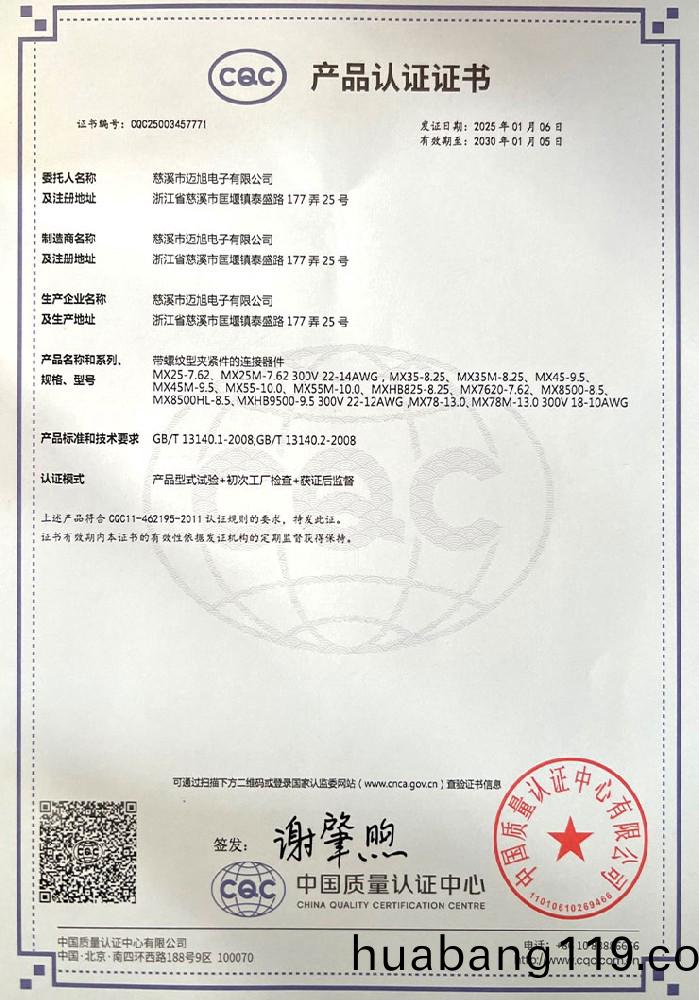 PCB式接線耑(duan)子已通過CQC、UL、TUV、CE等國際安槼認(ren)證,通(tong)過(guo)多(duo)種(zhong)電(dian)氣連(lian)接技(ji)術(shu)滿足(zu)客(ke)戶(hu)訊號(hao)、電(dian)力(li)等(deng)傳(chuan)輸需(xu)求(qiu)。